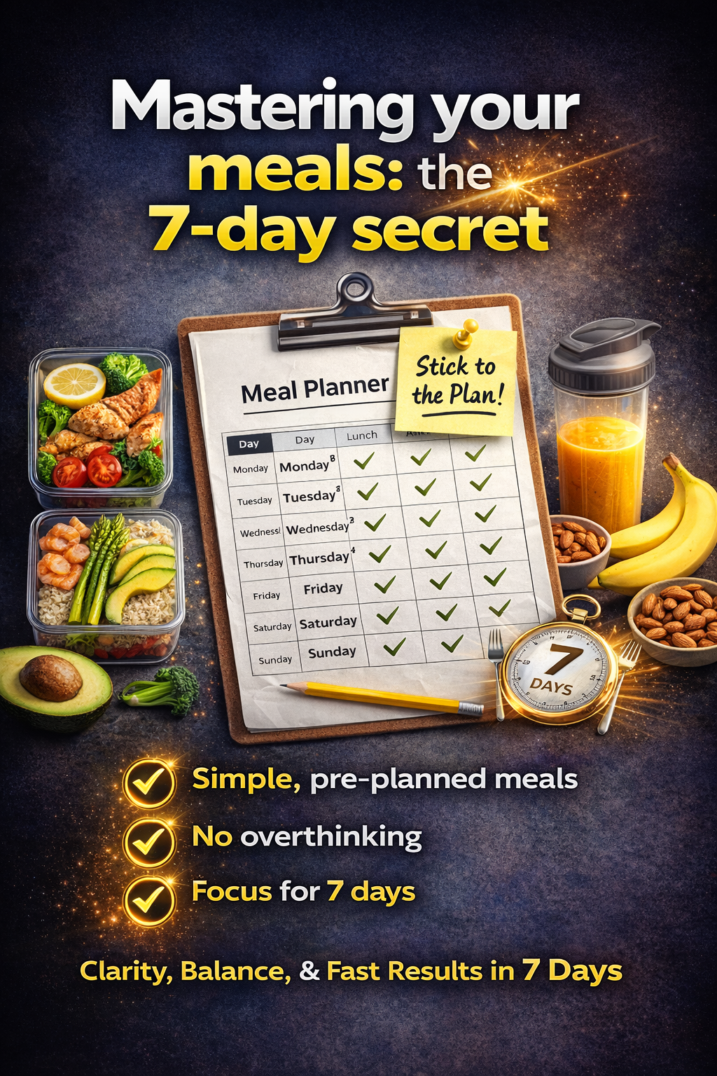The most important thing to understand is this: simplicity wins. This is not the week to experiment, improvise, or “add a little extra.” The power of The 7 Days Weight-loss Hack comes from short-term structure and full compliance. For 7 days, you'll keep meals simple, follow the plan exactly, avoid overthinking, and not modify the system. This isn’t about perfection forever; it’s about precision for one focused week. Mentally prepare by knowing the first 1–2 days may feel different as your body adjusts, cravings may reduce once blood sugar stabilises, and structure removes decision fatigue. When meals are simple and pre-planned, stress drops, and your body responds faster. The goal isn’t gourmet; the goal is momentum. Seven clear days of structured eating creates a visible shift—physically and mentally. And once you experience that shift, everything changes.